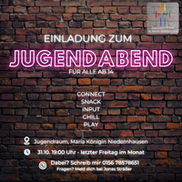 Pfarrei St. Martin Idsteiner Land Jugendabend mit Einweihung des Jugendraums Jugend Jonas Sträßer 17.06.2025 Jugendabend mit Einweihung des Jugendraums Gemütlicher Abend mit Einweihung des frisch reno