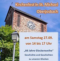 Pfarrei St. Martin Idsteiner Land Kirchenfest in St. Michael H.Karbach Kirchturm St.Michael mit Plakat zum Kirchenfest am 27.09. von 14 - 17 Uhr Kirchenfest St. Michael Kirchenfest St. Michael Oberjos