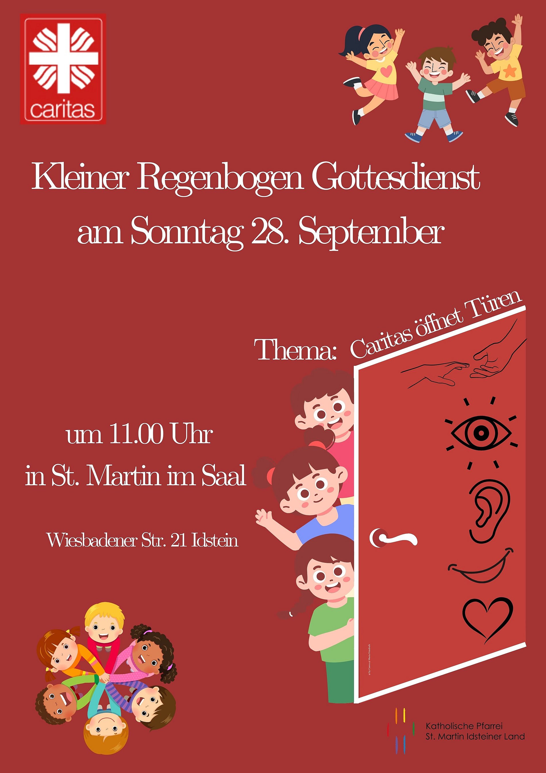 Mit „Da kann ja jeder kommen - Caritas öffnet Türen“ möchten wir die diesjährige Caritasaktion auch von der Pfarrei St. Martin Idsteinerland unterstützen, und wir möchten Sie um eine Spende für die unterschiedlichen Caritasprojekte bitten.