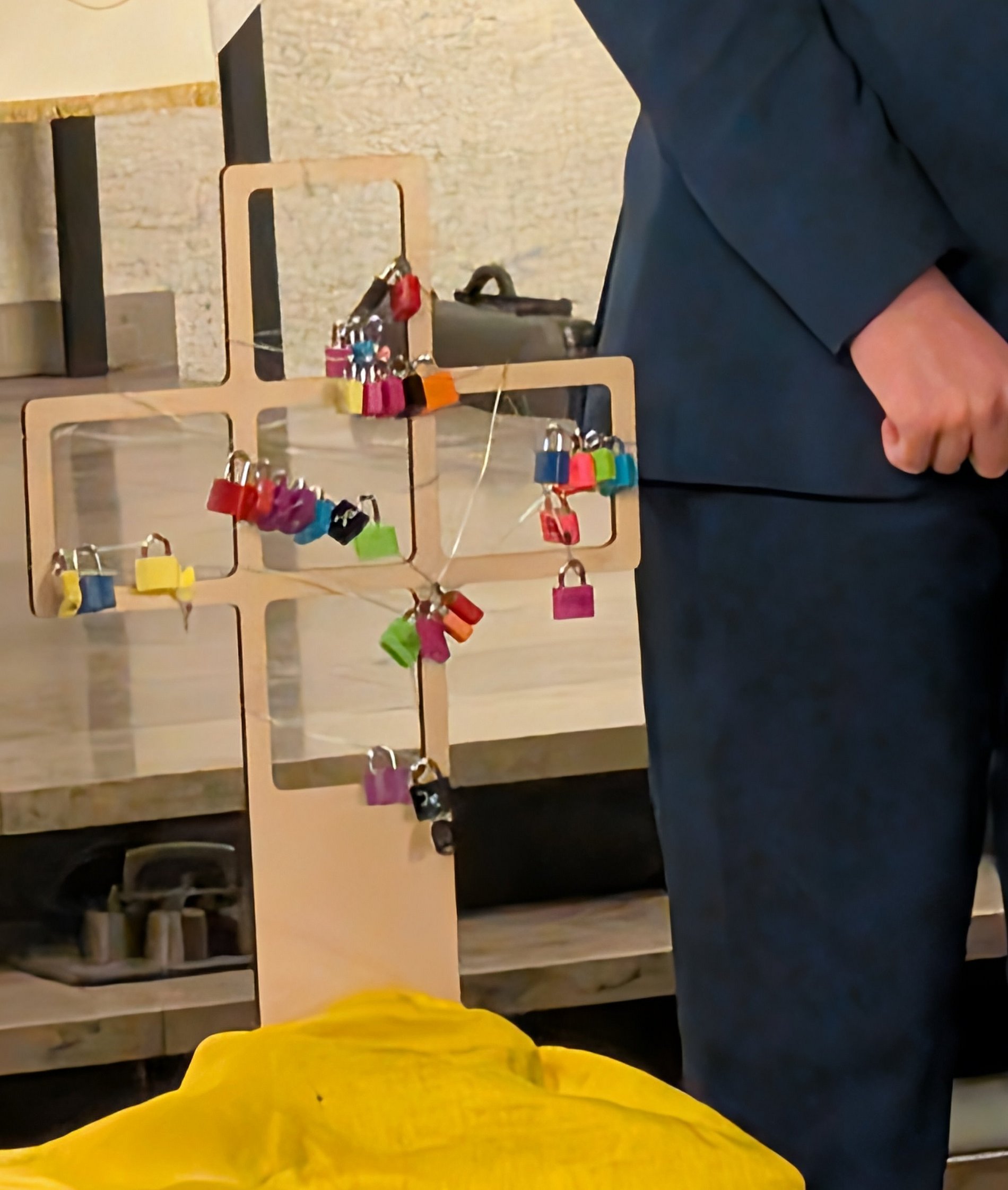 Die Symbolik erläuterten die Jugendlichen eindrucksvoll selbst: „Das Schloss ist das Zeichen für unser persönliches und freies Ja zur Firmung. Es zeigt, dass wir uns mit unserer Entscheidung fest an Gott binden und unseren Glauben bewusst leben wollen. Mit dem Schloss sagen wir: ‚Wir stehen zu unserem Glauben und zu Gott.‘“ Zum Einzug in die Kirche hatte jeder Firmling sein persönliches Schloss an einem Holzkreuz im Altarraum befestigt – „als Zeichen unserer Entscheidung für Gott und als Erinnerung daran, dass er uns auf unserem Weg begleitet“, so die Jugendlichen.