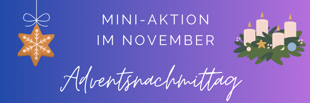 die Adventszeit rückt näher und gemeinsam wollen wir uns auf die Adventszeit einstimmen: Adventskranz basteln, Plätzchen backen, Kinderpunsch trinken – und natürlich jede Menge Spaß!